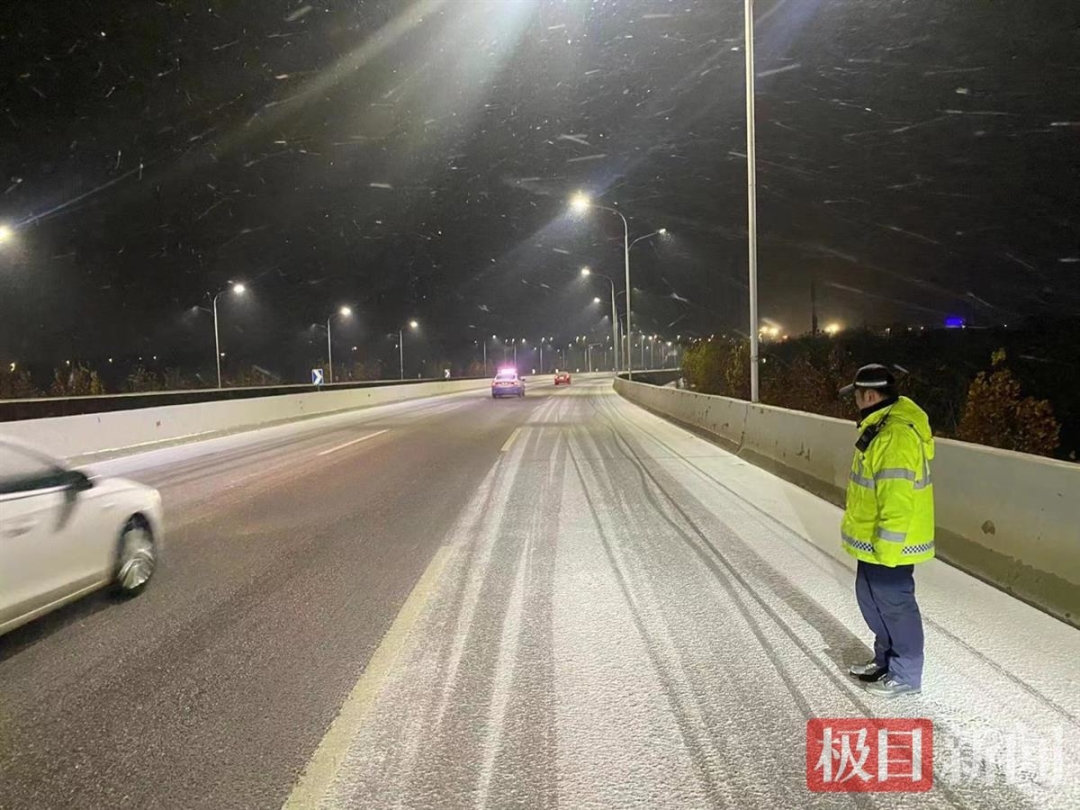 12月15日晚,东湖高新公安分局交通大队提前将融雪剂、除雪铲车等物资设备摆放到位,路面出现积雪后,民警立即按照边降雪、边撒盐、边除雪的要求,及时进行铲冰除雪,全力保障道路安全畅通。同时,根据辖区实际情况,科学优化警力部署,最大限度增加巡逻班次,加大路面巡逻管控力度,民警辅警通过手势、喊话、鸣警报器、闪警灯等方式提醒驾驶人控制行车速度、保持安全行车距离。