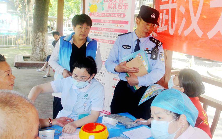 东西湖公安局丁其刚先锋队义诊、康养、防骗护安居民幸福生活