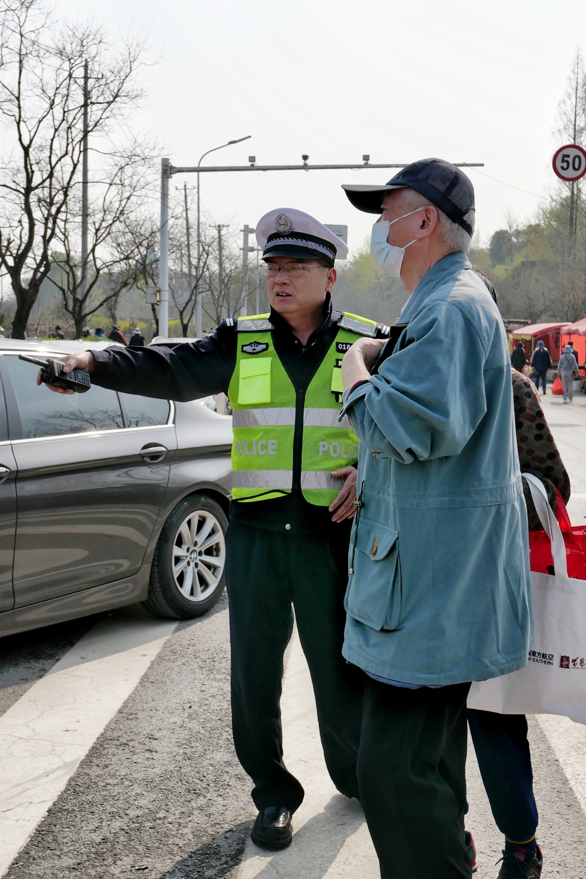 老人找不到公交站,民警耐心指路